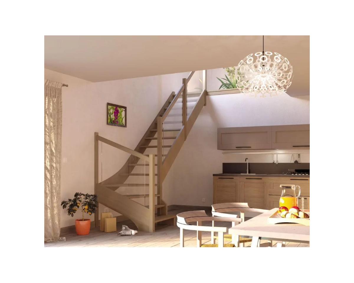 Courbes Accueillantes et Robustesse : Ce quart tournant bas élégant se distingue par ses lignes courbes douces qui guident naturellement la montée. Réalisé en bois naturel, il dégage une chaleur et une solidité rassurantes, le rendant parfaitement assorti aux cuisines ou salons boisés.