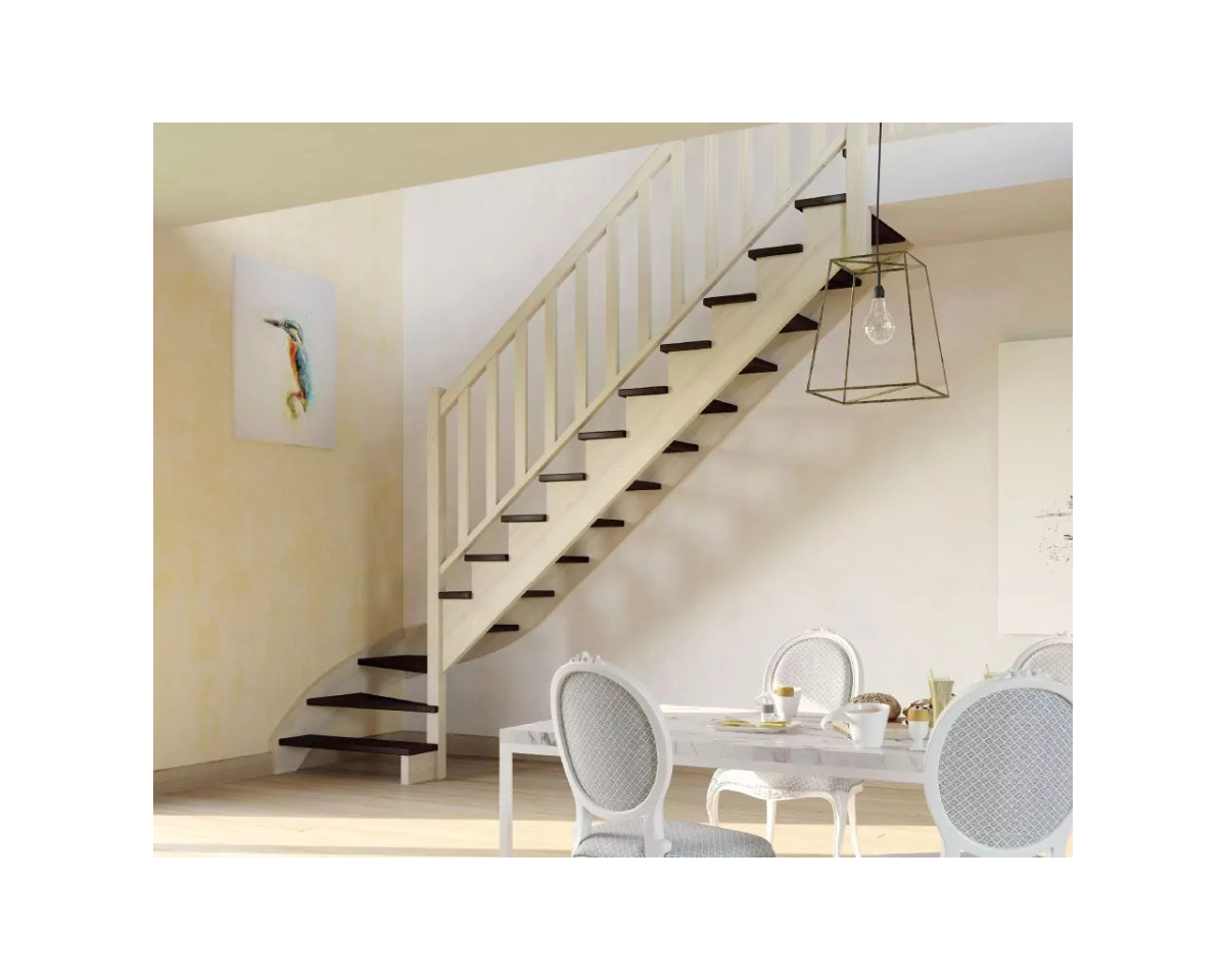 Tracé sur Mesure : Intégration Parfaite sa configuration en quart tournant bas avec marche débordante est un atout architectural. La marche débordante au départ crée une ouverture majestueuse et facilite l'accès, tout en étant conçue dans notre Gamme SUR MESURE.