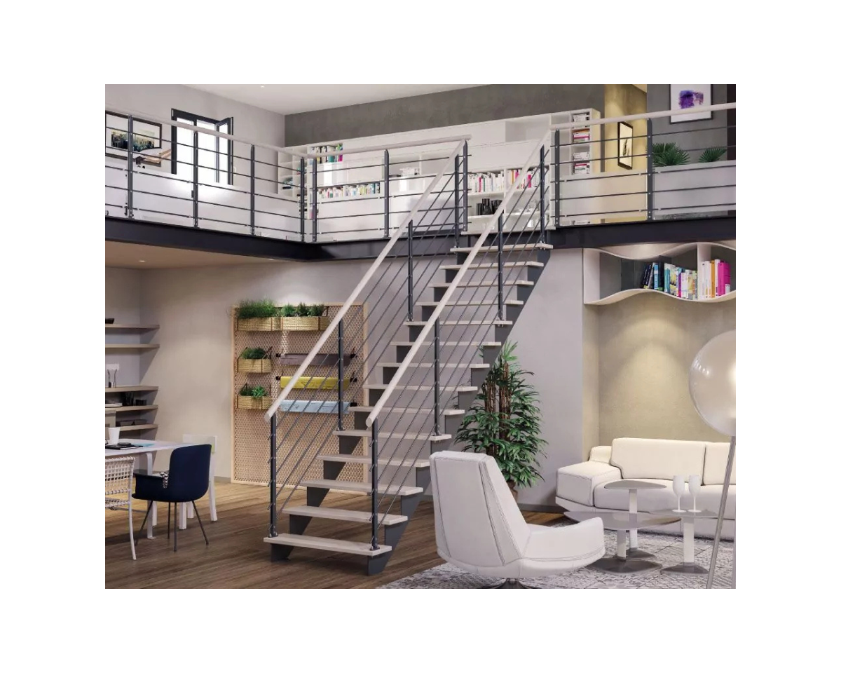 Contraste Épuré : L'Alliance du Blanc et du Noir les marches en Hêtre lamellé collé teinté blanchi se détachent spectaculairement de la structure anthracite. Ce contraste bicolore est la signature des intérieurs modernes et graphiques.
