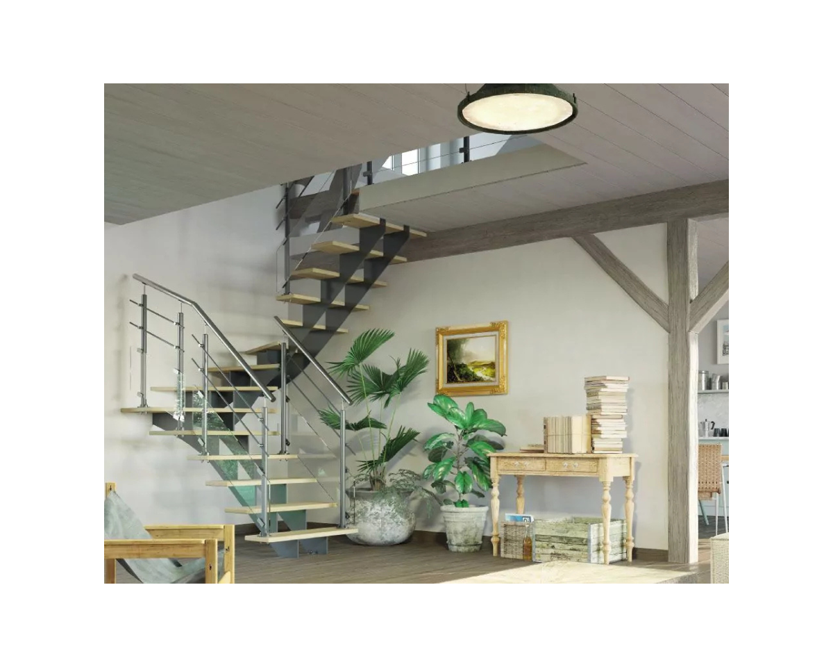 Optimisation d'Espace : Tracé en Demi-Tournant sa configuration en demi-tournant (180°) est idéale pour les petits espaces et les trémies étroites, permettant un gain de place maximal tout en conservant un confort de montée optimal.
