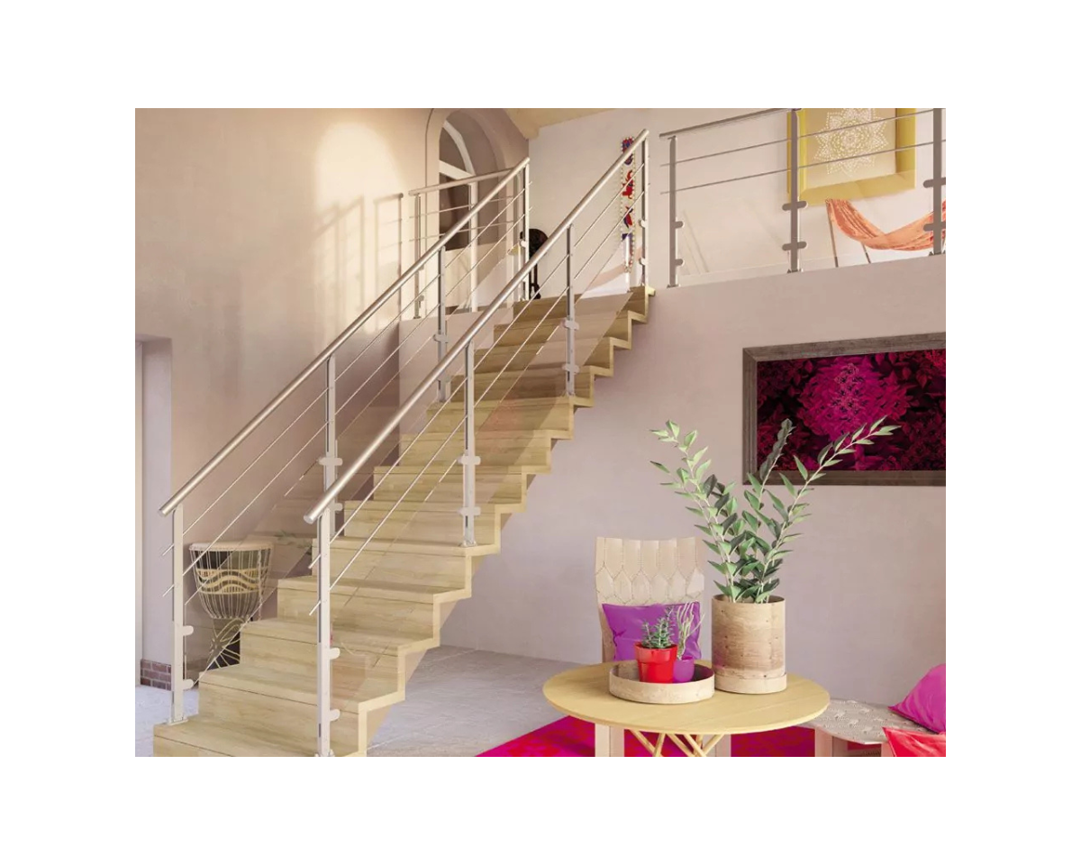 Ingénierie Structurelle : Design Aérien et Stable l'utilisation de deux crémaillères centrées en bois maintient les marches par le milieu, réduisant l'encombrement visuel et créant un effet "flottant". Ce choix technique est à la fois esthétique et d'une grande rigidité.