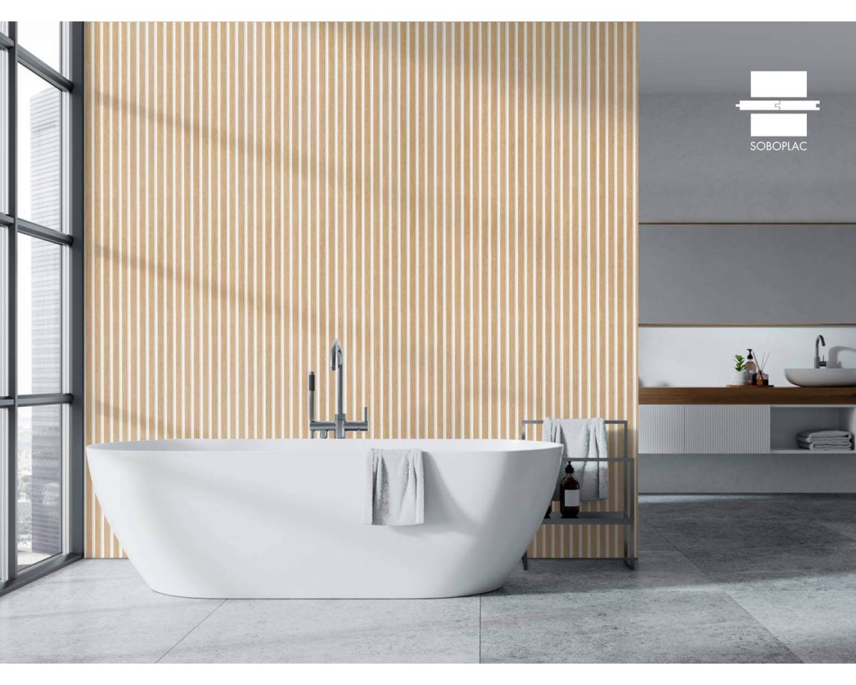 Envie de réchauffer votre intérieur avec une touche boisée pleine d’élégance ? Découvrez notre panneau mural effet tasseaux au coloris Chêne Clair/Blanc, une finition chêne doré aux reflets naturels qui s’adapte parfaitement à tous les styles d’aménagement, du plus épuré au plus contemporain.
