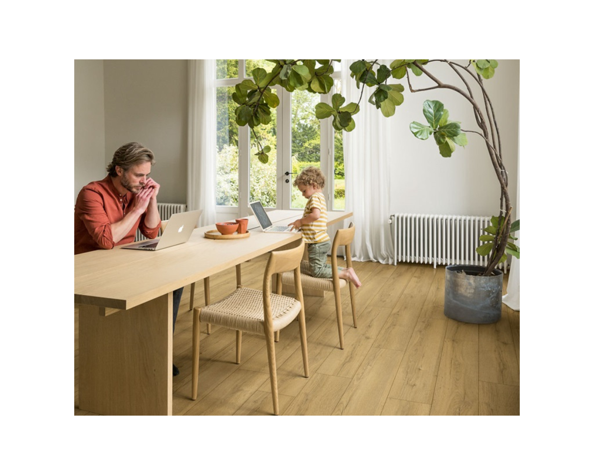 Dites adieu aux problèmes d’humidité en choisissant un sol Quick-Step résistant à l’eau. Ces sols sont non seulement élégants et naturels, mais ils sont aussi 100 % résistants à l’humidité, ce qui rend le nettoyage plus facile que jamais !