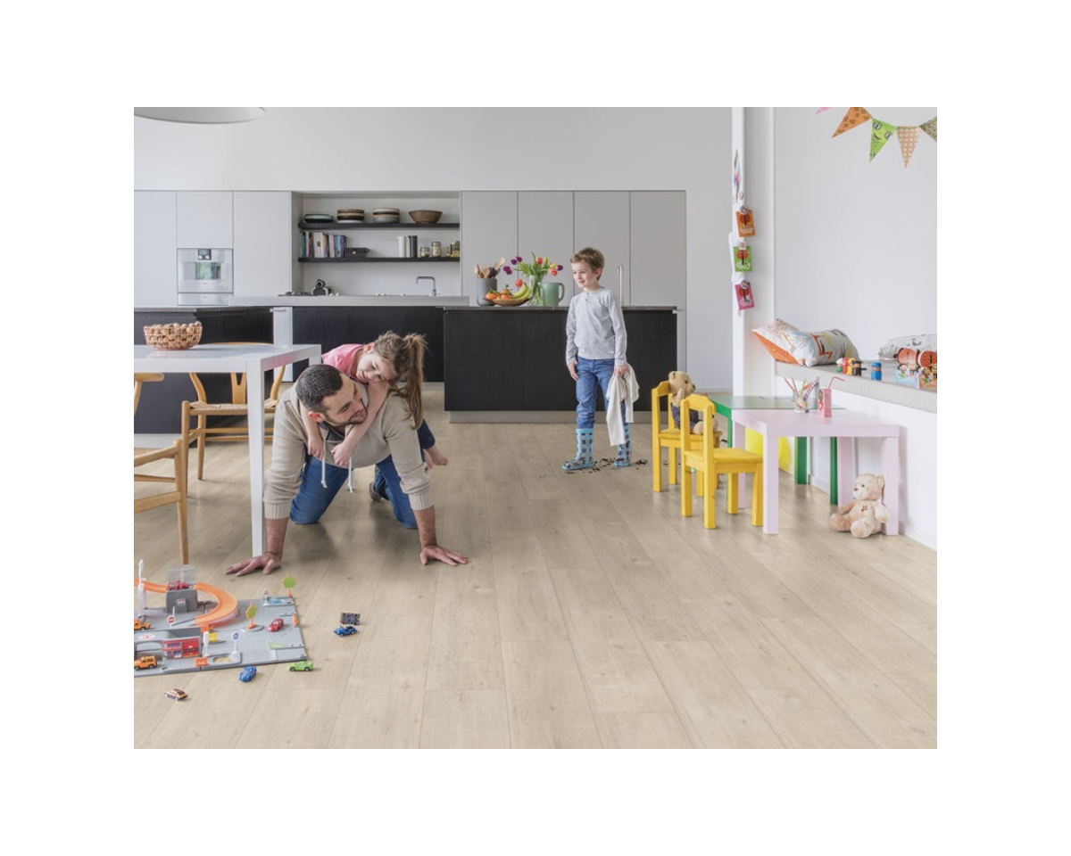 Dites adieu aux problèmes d’humidité en choisissant un sol Quick-Step résistant à l’eau. Ces sols sont non seulement élégants et naturels, mais ils sont aussi 100 % résistants à l’humidité, ce qui rend le nettoyage plus facile que jamais !
