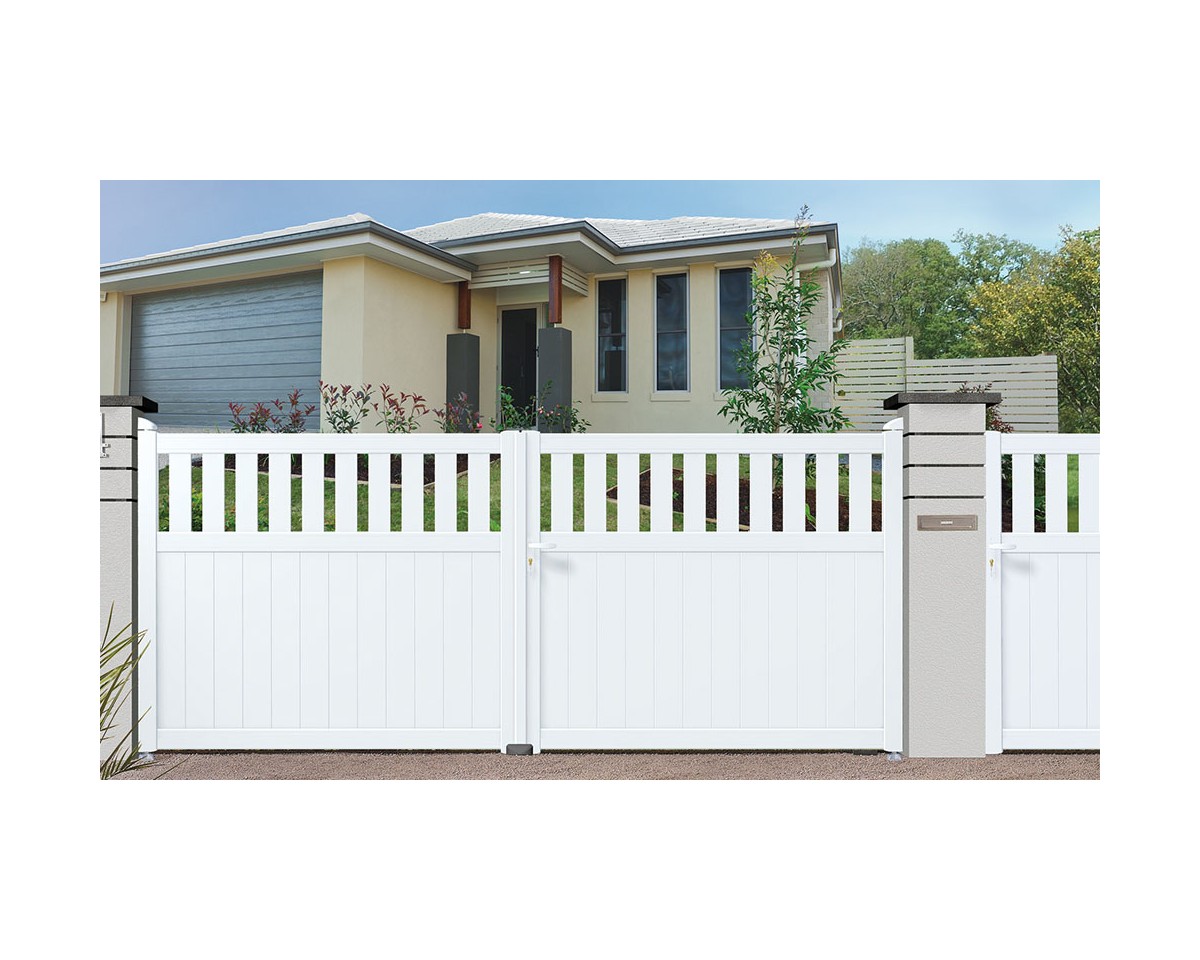 • Fabrication Française : Conçus avec un assemblage mécanique par tenons et mortaises, ces portails sont plus résistants aux torsions et permettent de remplacer une seule lame en cas d'accident.