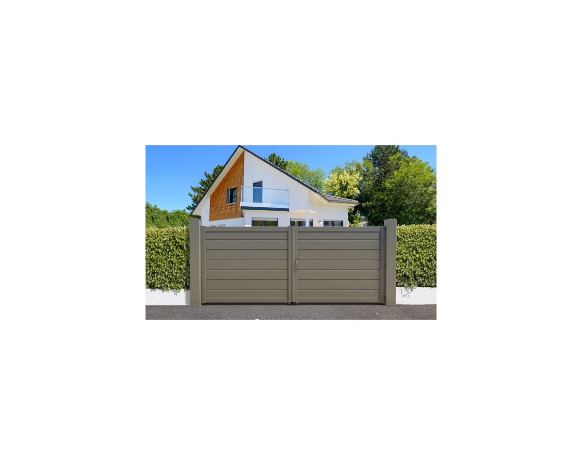 Portail Aluminium CT 85B de type plein. Portail moderne aux lames horizontales ajourées.