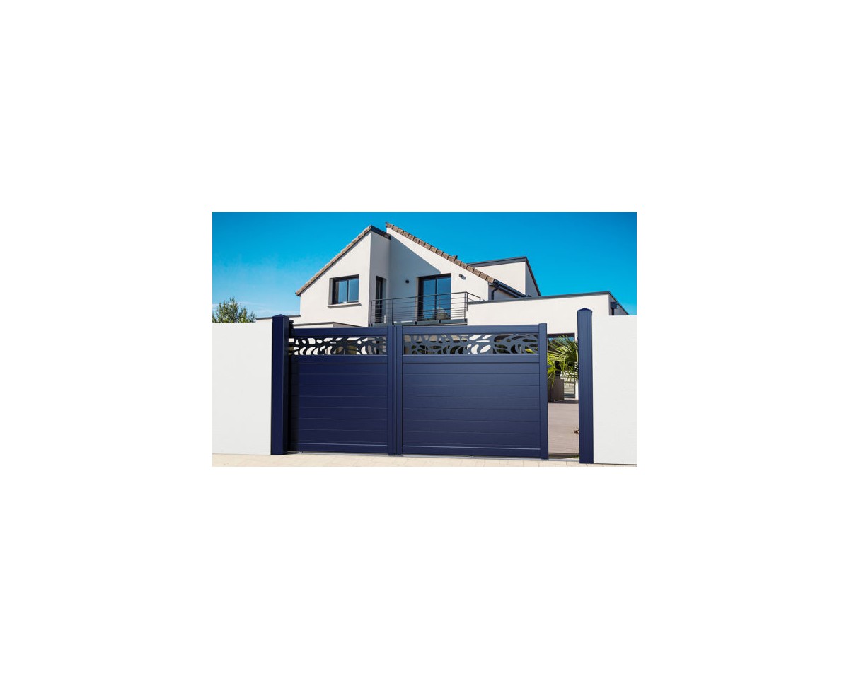 Un portail moderne et original, il s’adaptera facilement à votre extérieur. C’est un portail plein en lames horizontales avec un décor tôlé découpe laser.