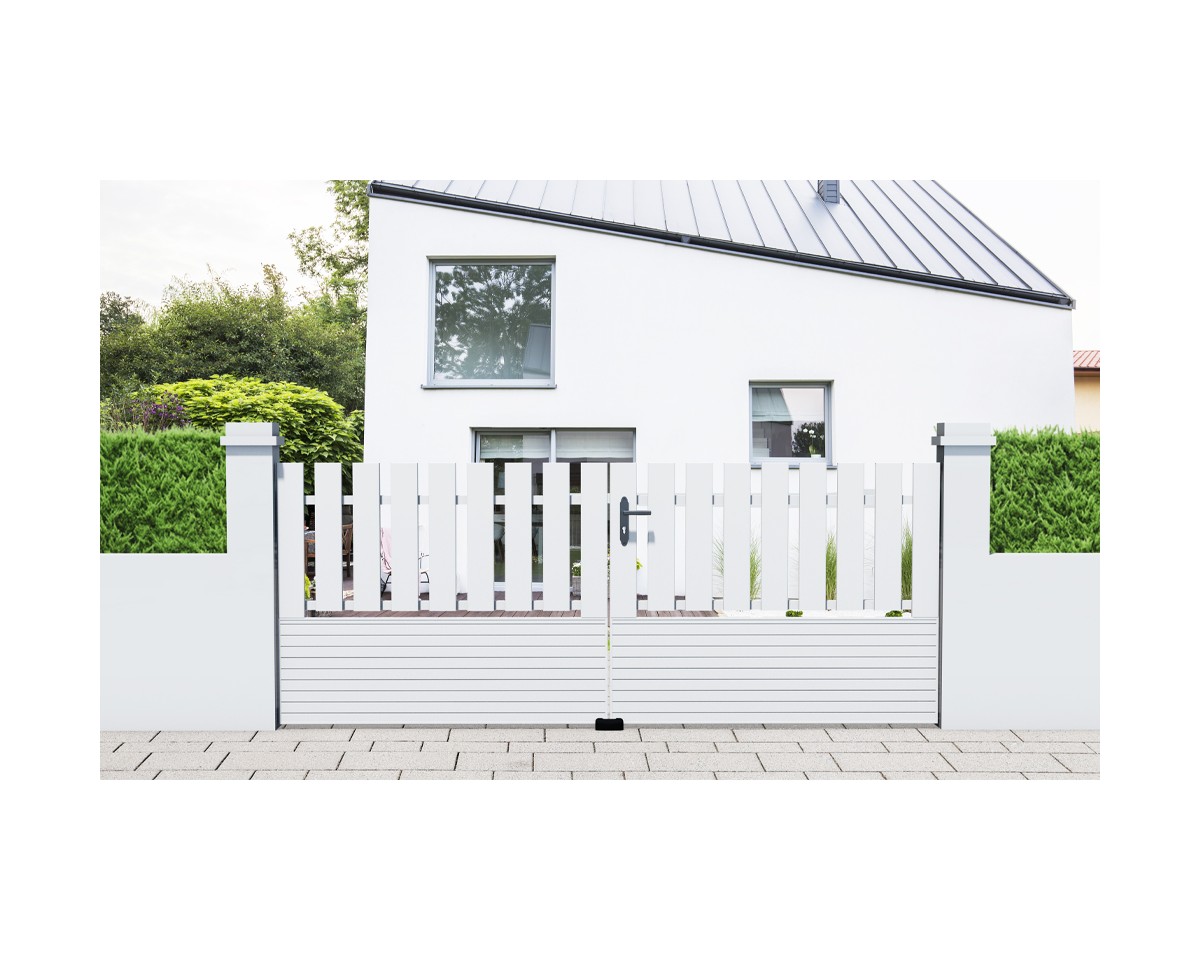 Sobre, ajouré et avec son bas plein, le portail PVC CA 10 allie élégance et légèreté.