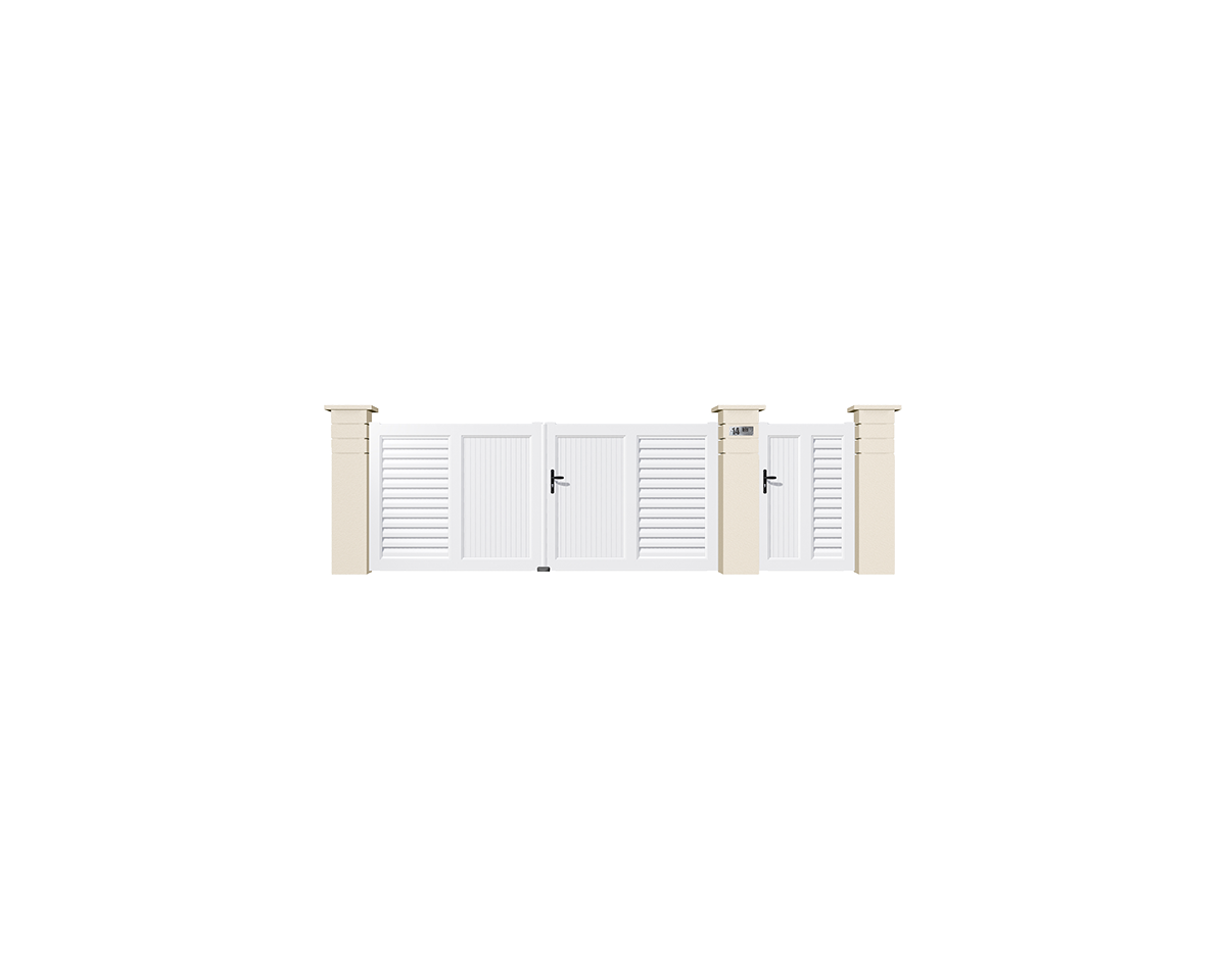 Ce portail en PVC robuste, vous protègera des regards extérieurs en apportant modernité et esthétisme à votre maison, il s’associe avec la clôture CL 59 et Cl 68B.Fabriqué en France et sur-mesure.