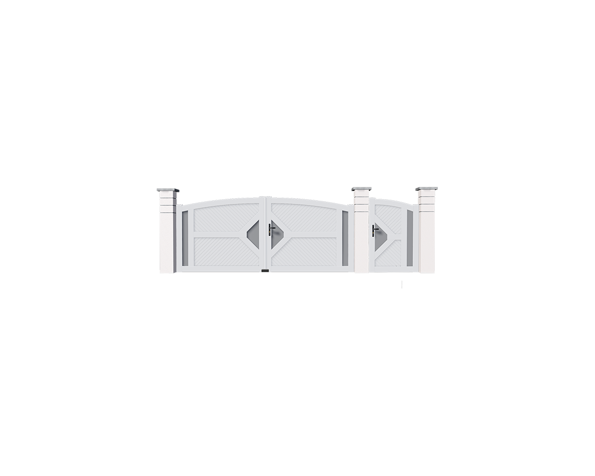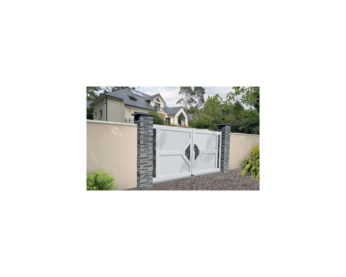 Ce portail en PVC et ses tôles personnalisables s’adapteront à tout style d’architecture tout en préservant votre intimité, il s’associe avec la clôture CL 59 et Cl 09.