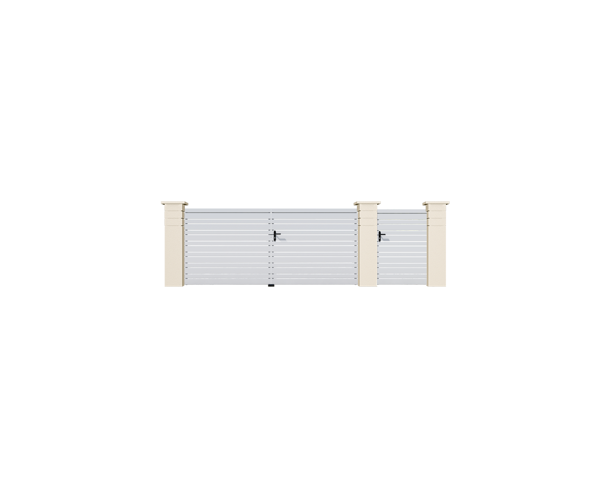 Doté d’un barreaudage horizontal de 120 x 28 mm et 80 x 28 mm, ce portail offre à la fois sécurité et élégance.