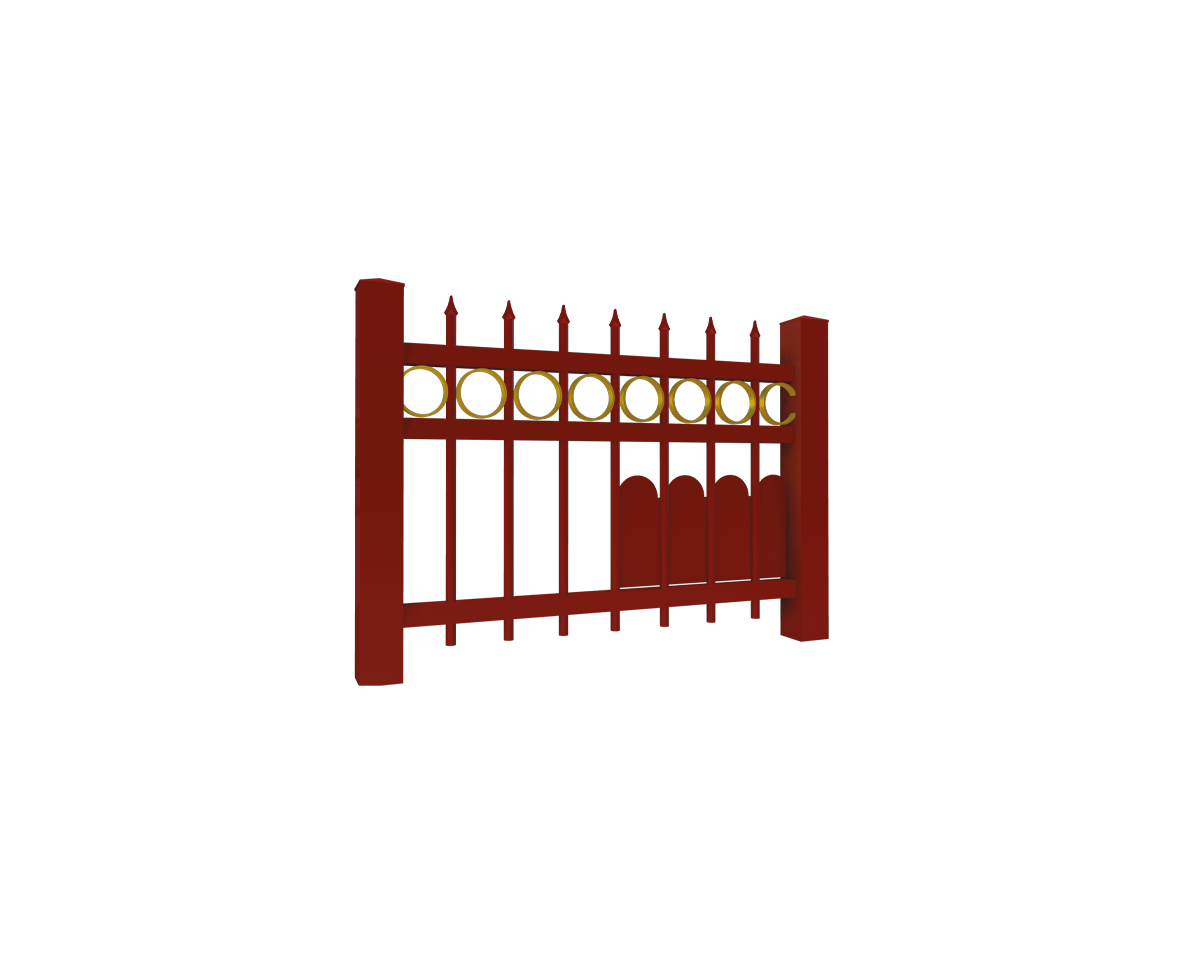 Barreaudage vertical par tubes de ø 20 mm et d’épaisseur 2 mm et anneaux haut de 100 mm de diamètre.