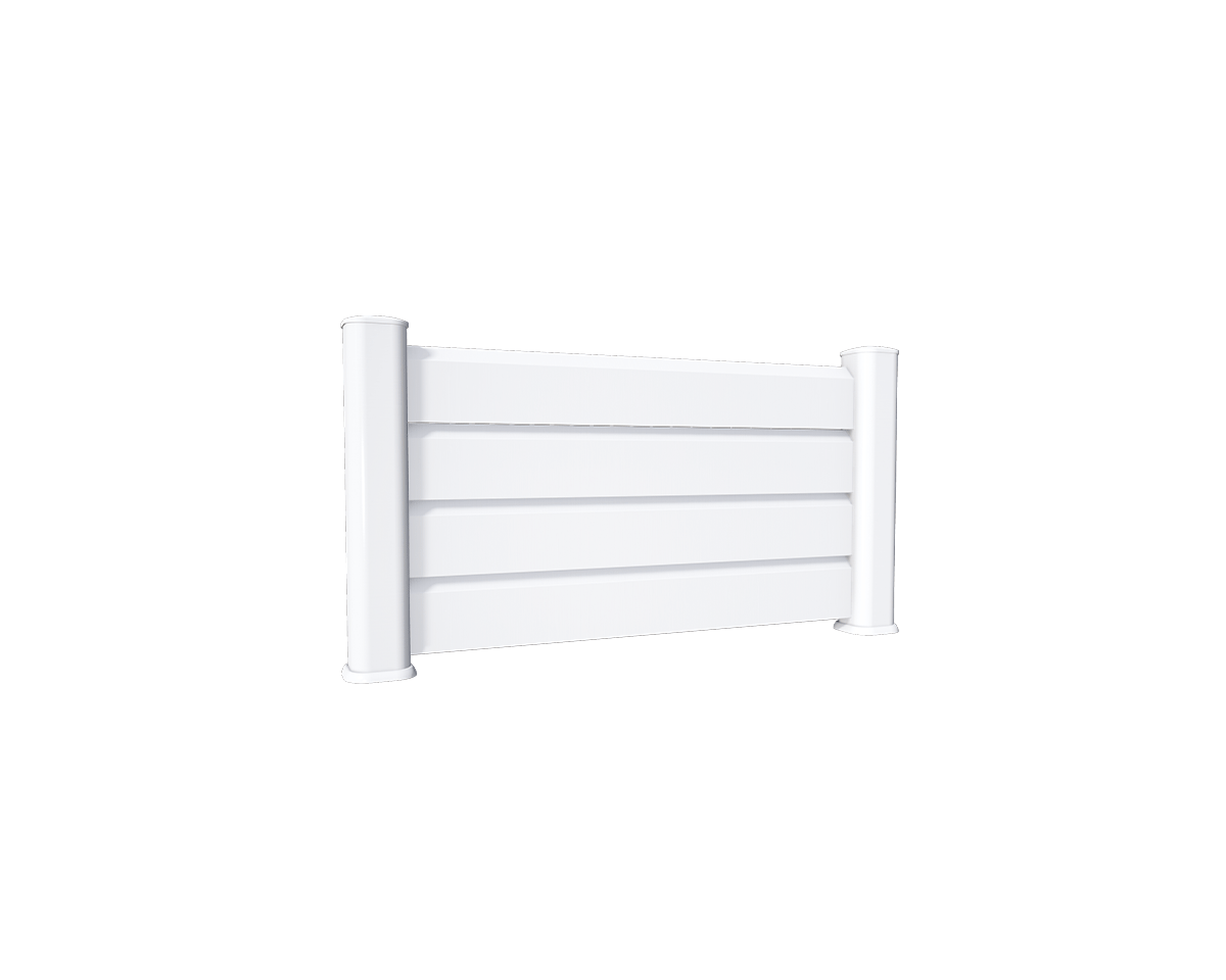 Barreaudage horizontal par lames PVC 130 x 28 mm. Clôture de type trompe l’œil.