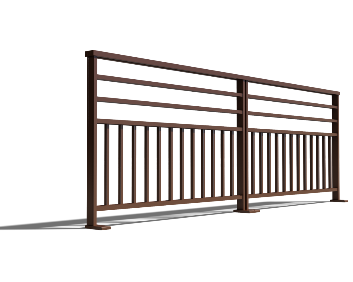 Le modèle Auralite est un garde-corps en aluminium et au design barreaudé.