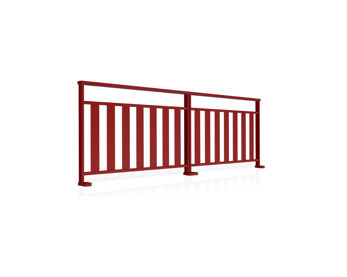 Remplissage : Barreaudage vertical, panneaux de verre (pour la transparence), ou tôle perforée (pour l'intimité).