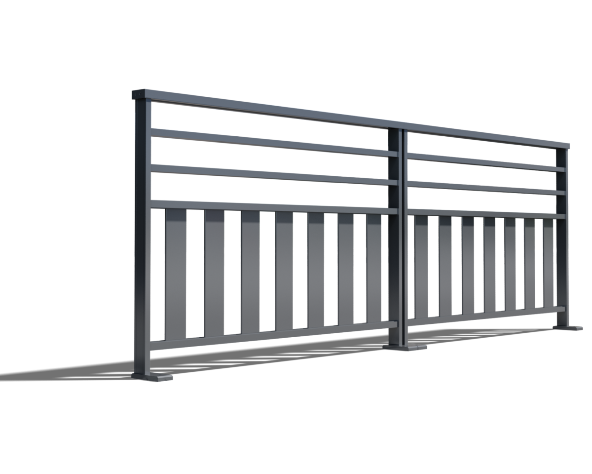 Remplissage : Barreaudage vertical, panneaux de verre (pour la transparence), ou tôle perforée (pour l'intimité).