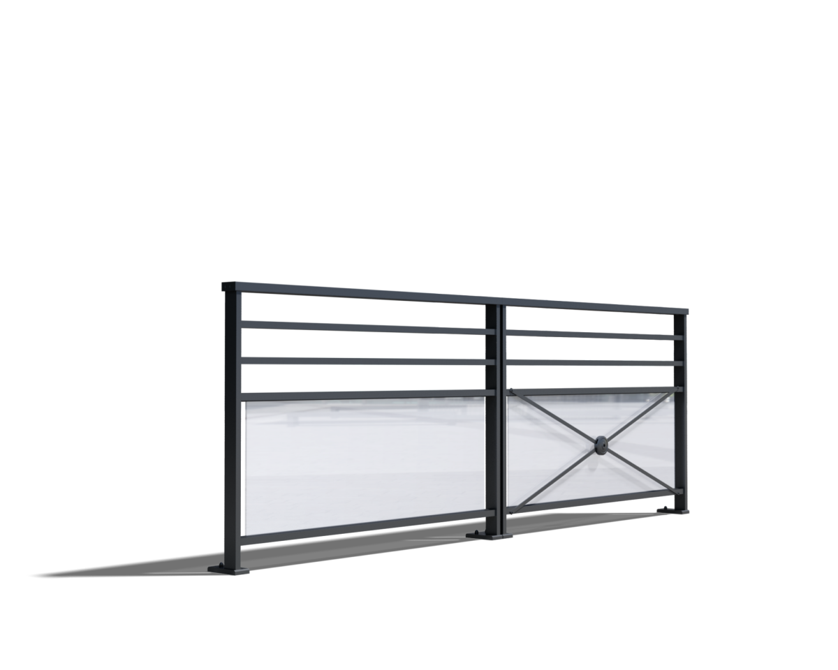 Remplissage : Barreaudage vertical, panneaux de verre (pour la transparence), ou tôle perforée (pour l'intimité).