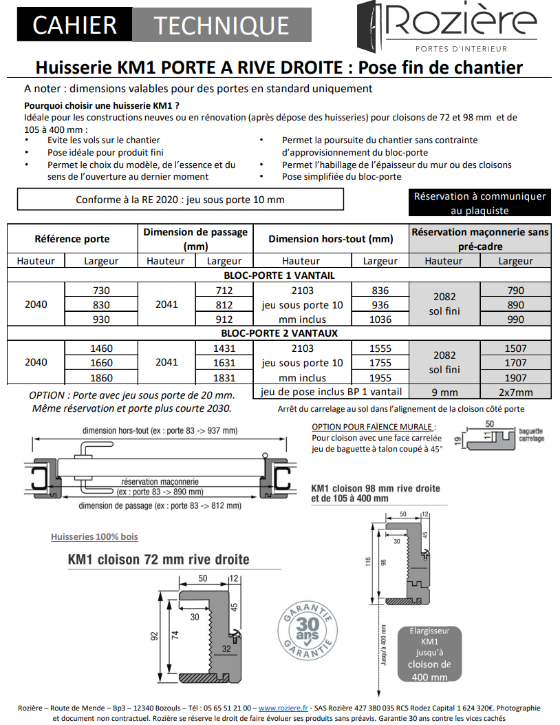 • Qualité des matériaux : charnières invisibles et serrure magnétique caractéristique d'une porte d'intérieur Rozière