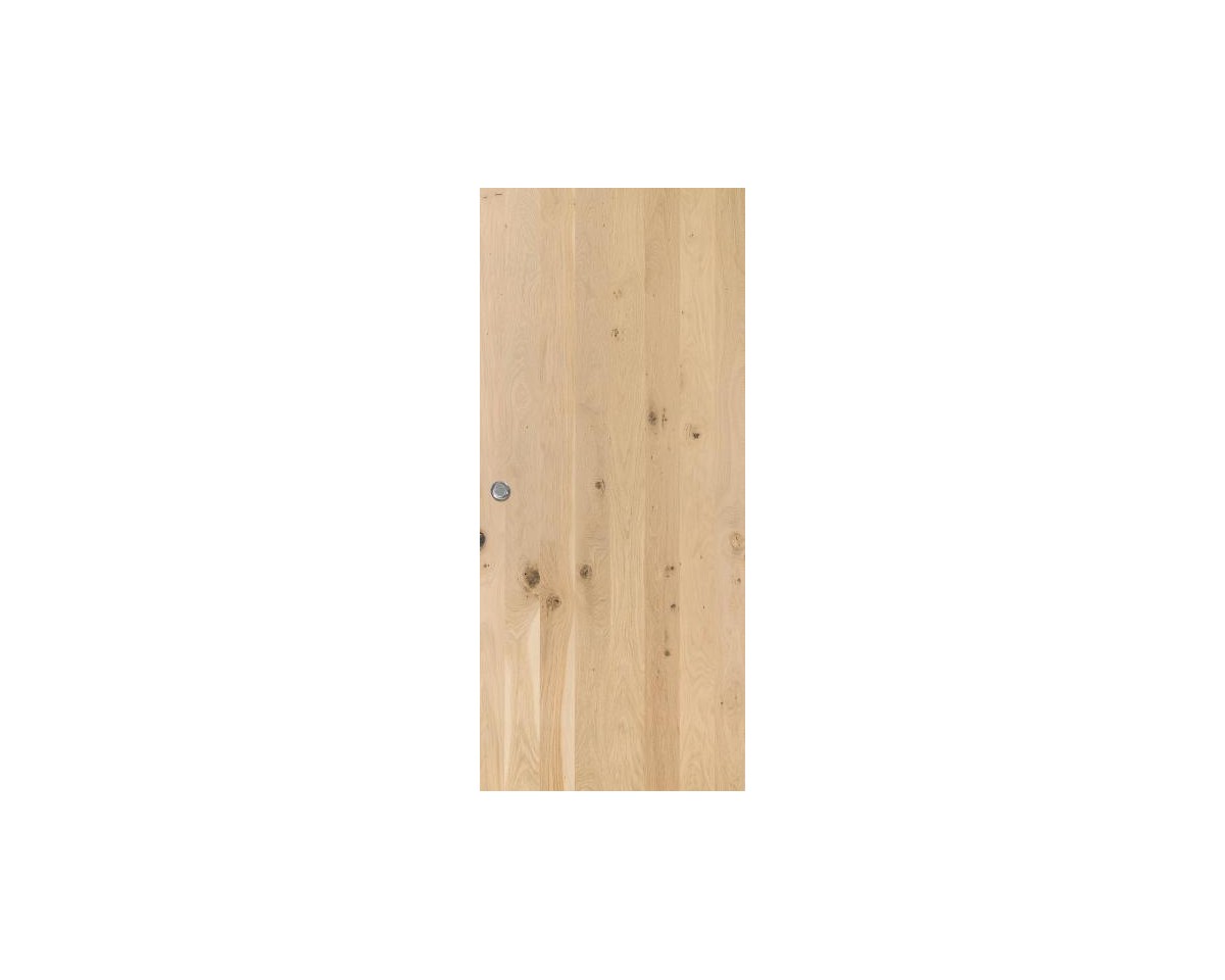 Le chêne dosse provient de la partie la plus éloignée du cœur de l'arbre, il se caractérise par un veinage marqué, des contrastes de teintes et la présence de quelques à beaucoup de nœuds de différentes tailles, faisant de chaque porte un modèle unique. Présence d'aubier. L'Epure Chêne Dosse joue la carte du fil horizontal pour un design tout en finesse. En 2025, on bouscule les codes avec L'Epure Verticale Chêne dosse : un fil vertical qui ne manque pas de caractère.