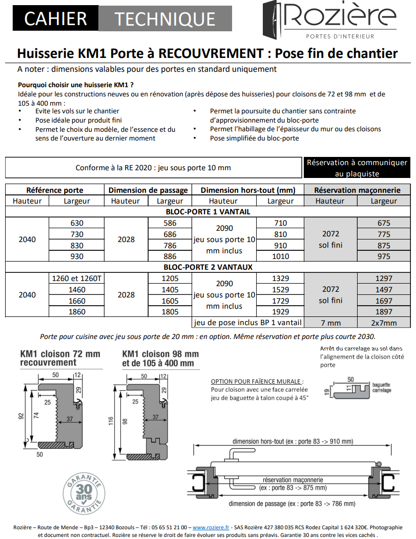 Caractéristique d'une porte d'intérieur Rozière