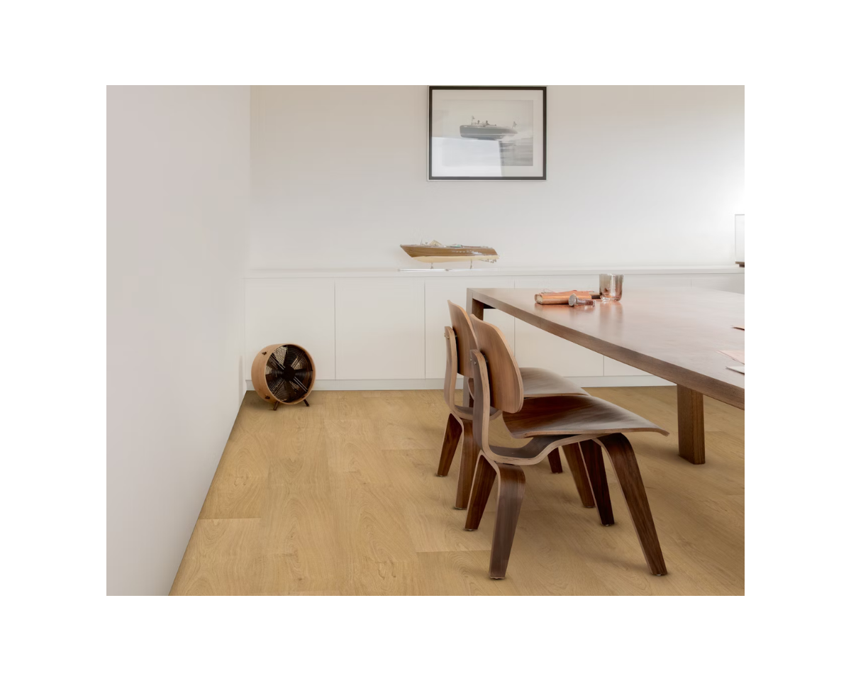 Ces sols Floorify Croissant, avec leurs riches tons bruns dorés inspirés des croissants fraîchement cuits, créent une atmosphère accueillante et chaleureuse dans n'importe quelle pièce. Résistants à l'eau et conçus pour durer, ils sont idéaux pour les ménages occupés. L'installation est facile, ce qui vous permet d'ajouter une touche d'élégance française à votre intérieur. Avec Floorify, vous bénéficiez d'un entretien facile et d'une beauté durable.