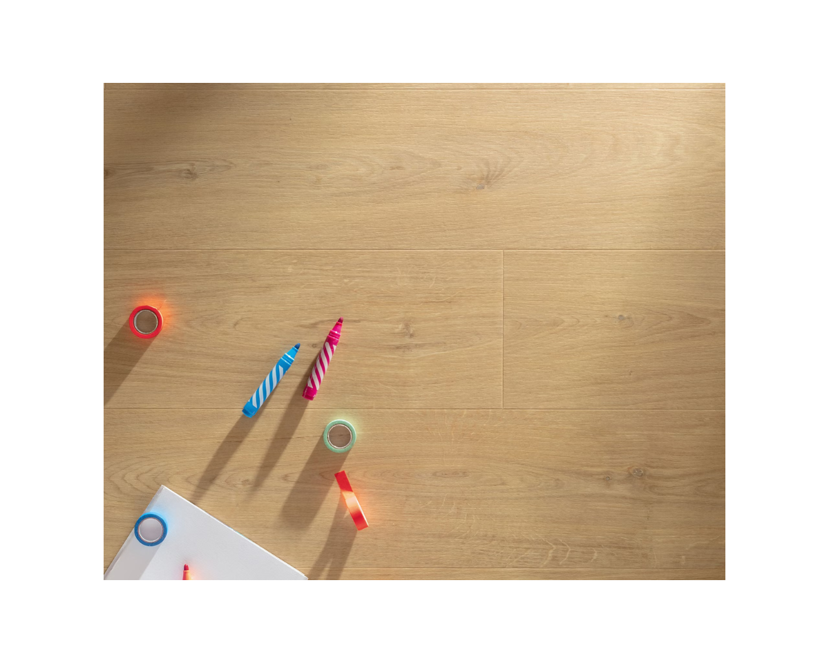 Marchez dans le calme et la chaleur. La structure multicouche de Floorify absorbe les bruits de pas et procure une sensation de douceur sous les pieds. De plus, sa faible résistance thermique le rend parfaitement compatible avec un chauffage par le sol.