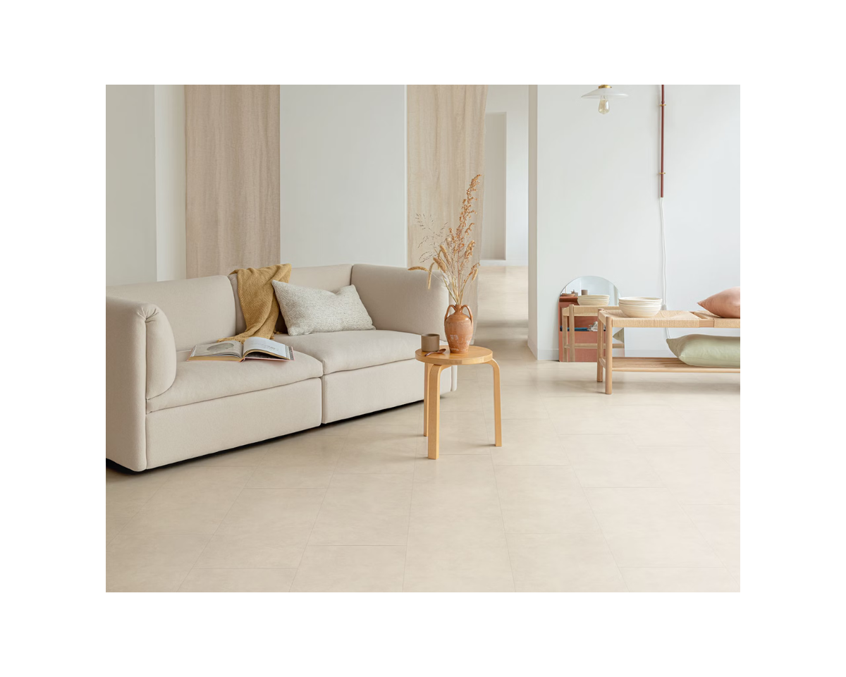 Le secret de Floorify réside dans son noyau rigide unique. Cette technologie rend le sol particulièrement stable et résistant aux chocs. Elle permet une pose directe sur un ancien carrelage sans que les joints ne deviennent visibles, évitant ainsi de lourds travaux de préparation.