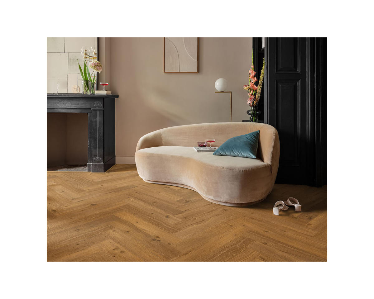 Découvrez le charme robuste du Floorify F333 Ikura, un parquet en chevrons inspiré par un chêne de caractère aux teintes brunes chaleureuses. Ce sol ajoute une sensation de chaleur et de raffinement à tout intérieur, grâce à sa couleur riche et son motif en chevrons unique. L'Ikura F333 dégage un charme naturel et crée une atmosphère cosy dans chaque pièce où il est posé. Avec sa durabilité et sa facilité d'entretien, ce parquet en chevrons n'est pas seulement un ajout esthétique à votre maison, mais aussi un choix pratique pour une beauté durable et un confort.