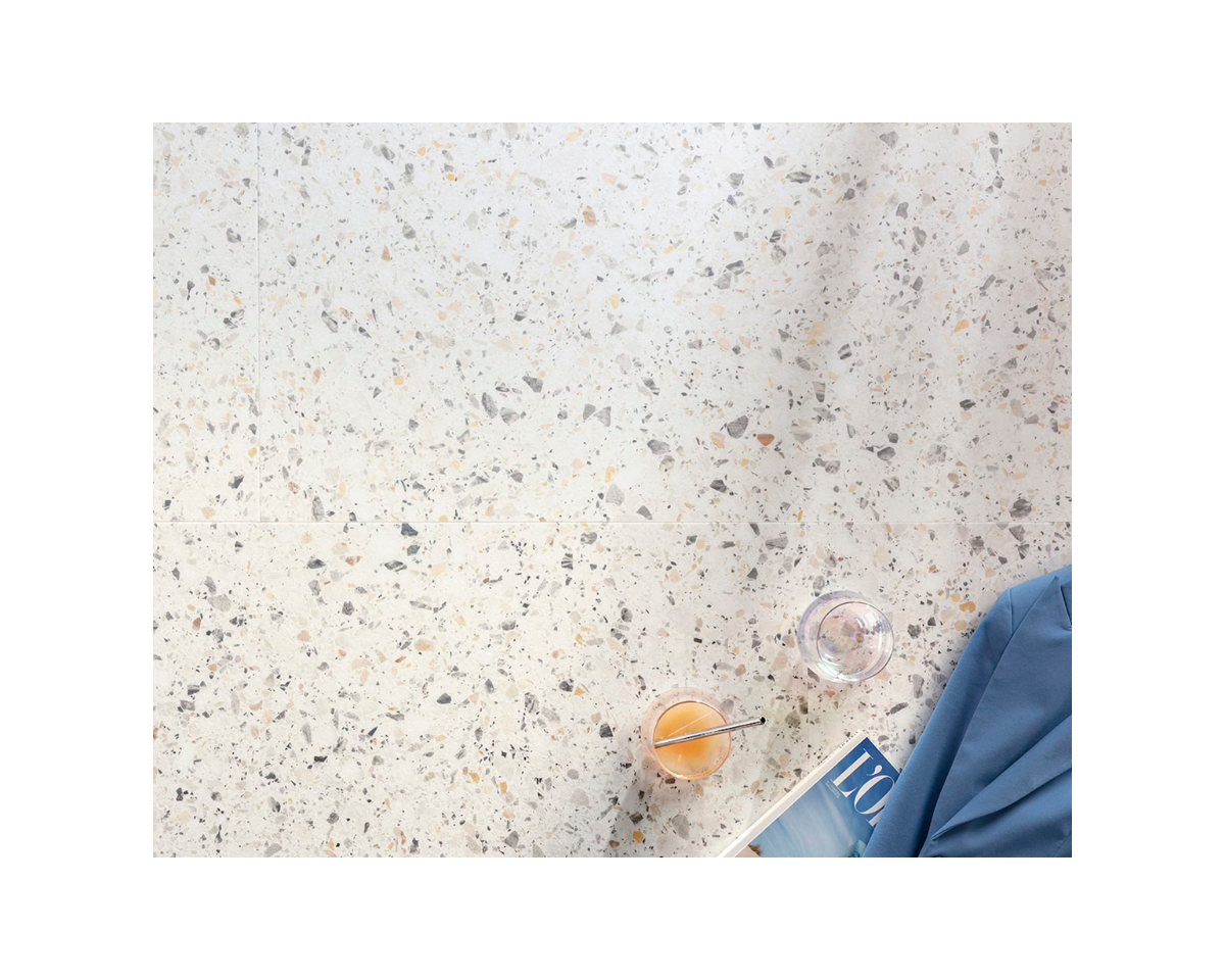 Apportez le flair des places italiennes à votre maison avec Floorify Verona F023, un carrelage en vinyle de luxe qui redonne vie au design terrazzo ludique. Ces grands carreaux combinent la fantaisie du terrazzo avec le confort et les avantages pratiques du vinyle, parfaits pour les salons tendance et les cuisines élégantes. L'installation de Verona F023 est simple grâce à son système de clic éprouvé. De plus, ces carreaux sont résistants à l'eau, ce qui garantit que votre sol reste beau et facile à entretenir. Choisissez Verona F023 si vous souhaitez transformer votre maison avec une gaieté ludique sans sacrifier la commodité et la durabilité.